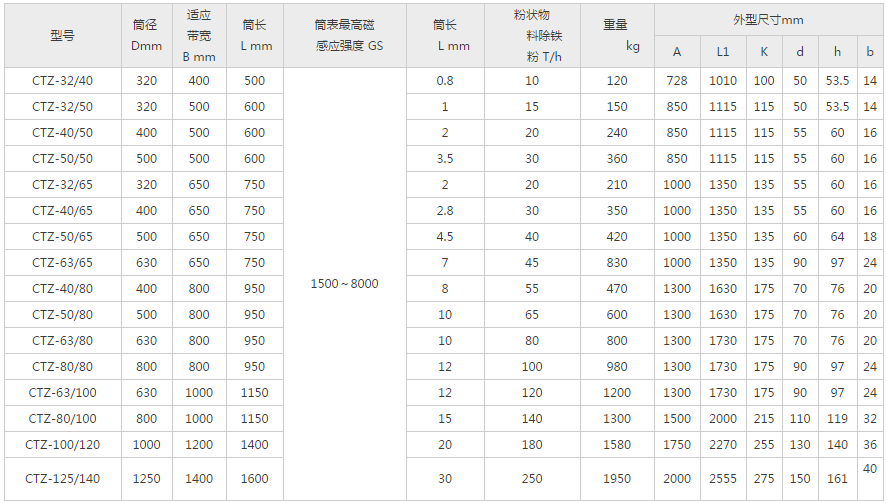CTZ型中場強半磁滾筒(CTZ型中場強全磁滾筒結(jié)構(gòu)與RCT型參數(shù)等同),多用于對粉狀、顆粒狀、小塊狀物料的凈化處理,或?qū)﹁F質(zhì)的回收利用,對防止研磨機、壓榨機的破壞和磨損起著可靠的保護(hù)作用。它安裝方便、吸力強、低能耗、連續(xù)工作、操作簡單。