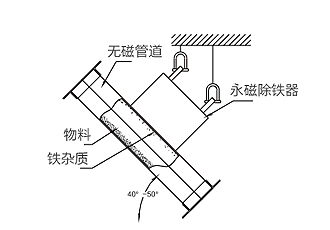 適合沒(méi)有輸送皮帶,只能提供下料溜槽的場(chǎng)合。當(dāng)散狀物料經(jīng)過(guò)時(shí),鐵雜物被高磁場(chǎng)的永磁鐵吸附,處理鐵雜質(zhì)時(shí),打開(kāi)管道專用門將雜質(zhì)人工取除。該設(shè)備適用于含鐵量較少的場(chǎng)合,主要應(yīng)用于水泥、化工、煤炭、塑料、耐火材料、建材等行業(yè)的下料管道中處理雜質(zhì)。
