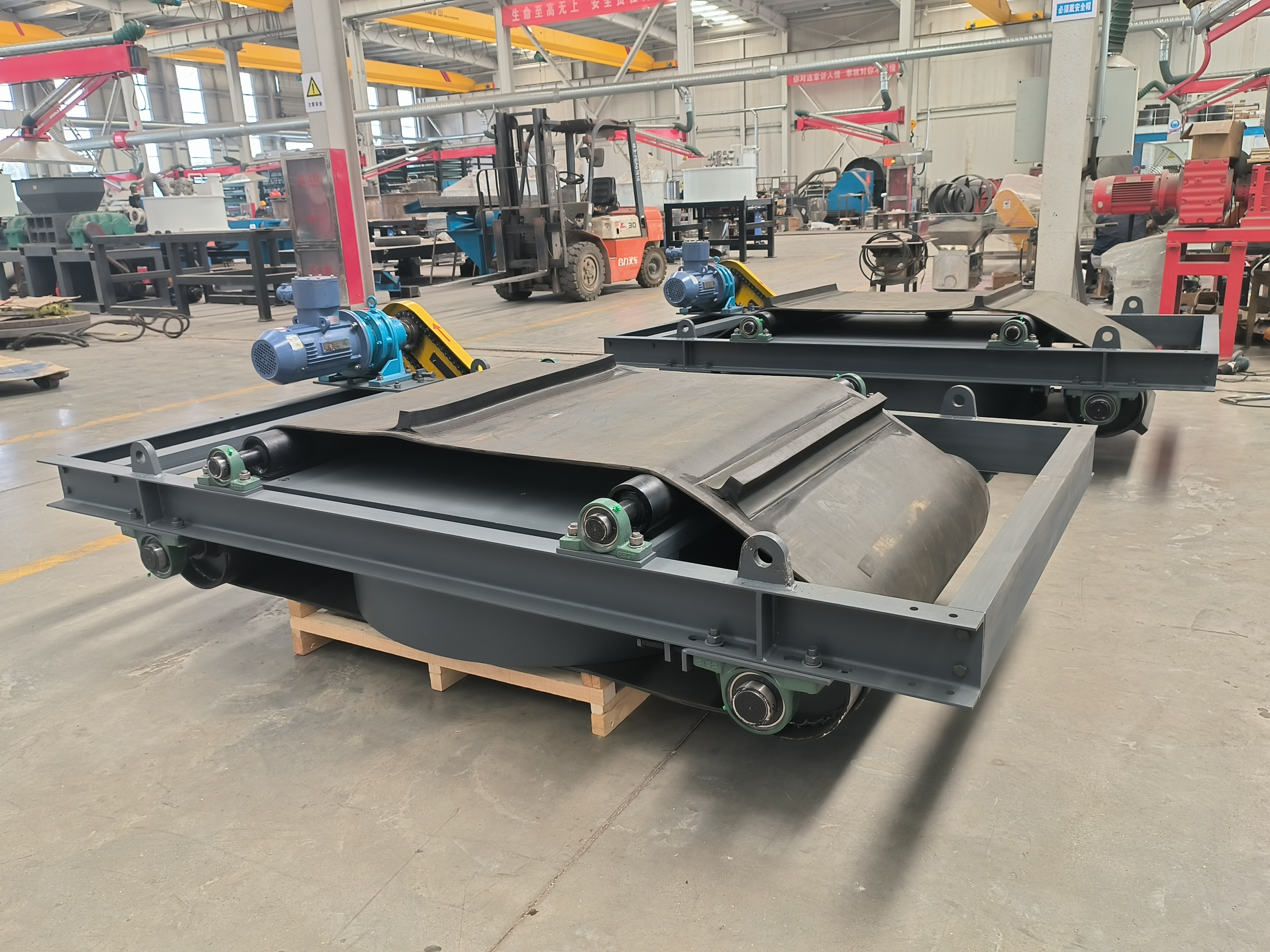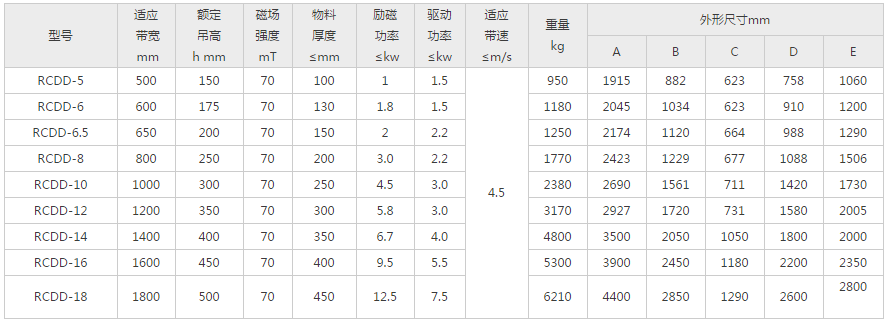 RCDD型自冷自卸式電磁除鐵器是一種用于自動處理粉狀或塊狀非磁性物料中雜鐵的除鐵裝置。其內(nèi)部采用電工專用樹脂澆注,自冷式全密封結(jié)構(gòu)。具有透磁大、吸力強(qiáng)、防塵、防雨、耐腐蝕、皮帶可自動糾偏等優(yōu)點(diǎn),在惡劣的環(huán)境中仍能可靠運(yùn)行。