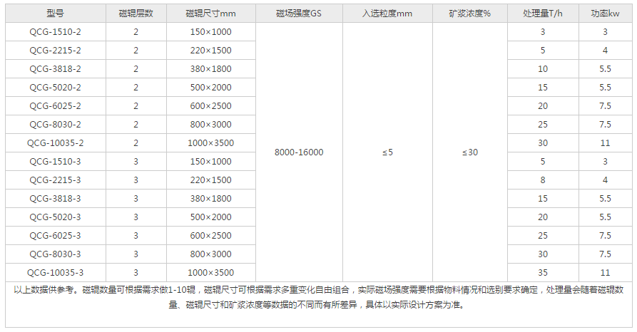 QCG型強(qiáng)輥濕式磁選機(jī)是我公司根據(jù)多年經(jīng)驗(yàn)和客戶現(xiàn)場(chǎng)需求研發(fā)的一種組合機(jī)型,可以實(shí)現(xiàn)多重結(jié)或不同磁場(chǎng)強(qiáng)度的組合。主要用于細(xì)粒弱磁性礦石的粗選、掃選和精選。可有效的對(duì)錳礦、赤鐵礦、假像赤鐵礦、鏡鐵礦、菱鐵礦、錳礦、鉻鐵礦針鐵礦、褐鐵礦、菱鐵礦、鉻鐵礦、鈮鉭鐵礦、鈦鈰鐵礦、黑鎢礦、鐵英巖礦、橄欖石、硫銅鍺礦、鐵白石、黑云母、綠簾石、蛇紋石、原生鈦鐵礦,海濱砂礦,原生金紅石,黑鎢礦和非金屬除鐵。