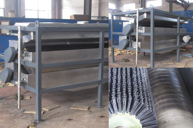 其原理為物料經(jīng)料倉(cāng)通過導(dǎo)料盤進(jìn)入磁場(chǎng)區(qū),磁性礦物被吸附在磁輥表面旋轉(zhuǎn)到達(dá)精礦區(qū),毛刷將吸附在磁輥表面上的磁性礦刷脫,在高壓水的噴射下落到精礦斗里,部分未被吸附的磁性礦粒、非磁性礦粒和磁性較弱的礦粒進(jìn)入到下一級(jí)再選。