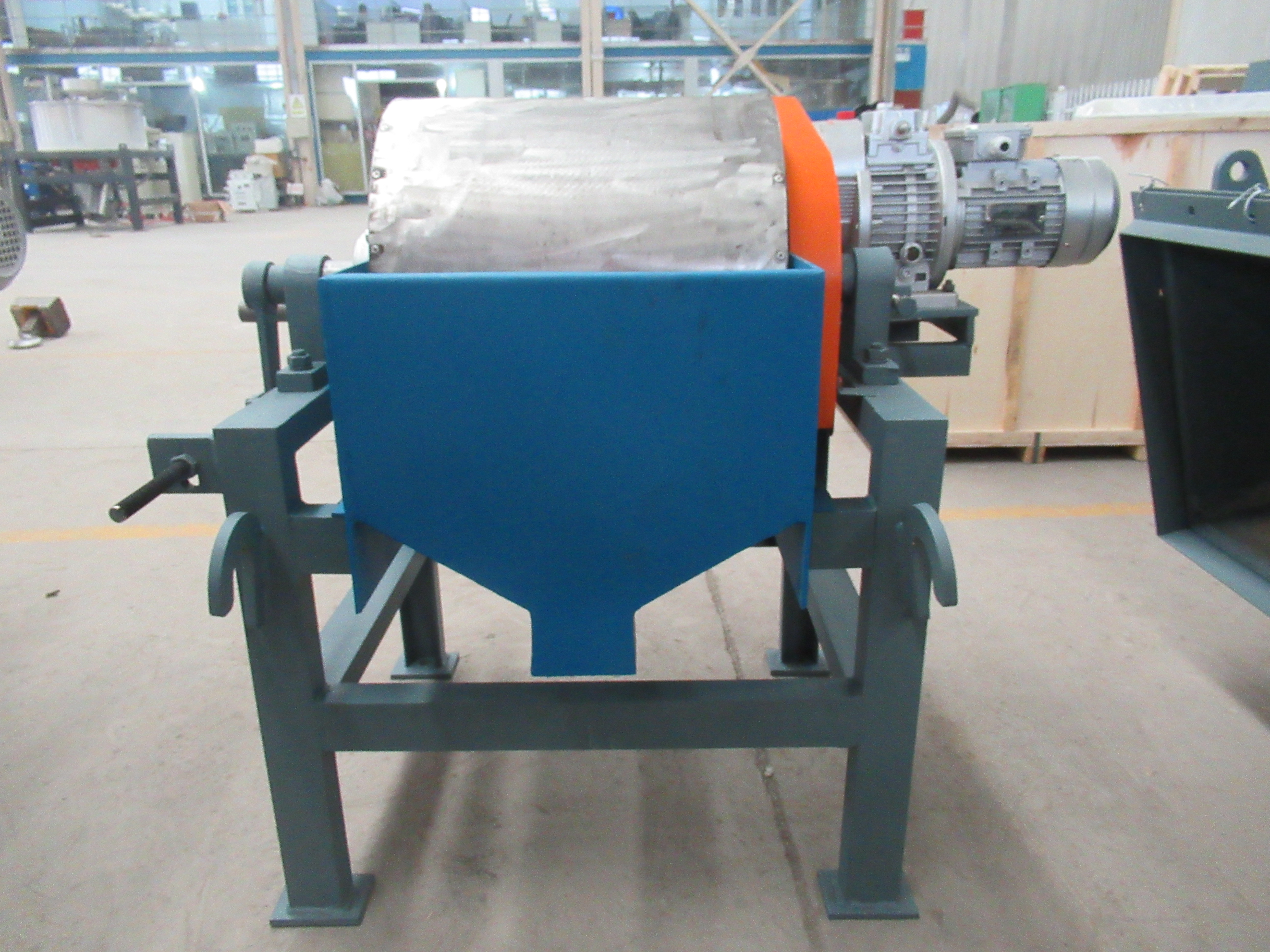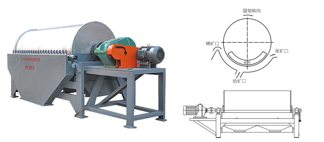 其原理是當(dāng)?shù)V漿進(jìn)入磁場(chǎng)區(qū)時(shí),其中強(qiáng)磁性礦物被吸附在圓筒表面,弱磁性和非磁性礦物被水流沖洗排出,而吸附在圓筒表面上的磁性礦物隨圓筒旋轉(zhuǎn),被帶出磁場(chǎng)區(qū),用沖洗水沖入精礦槽中,完成分選作業(yè)。