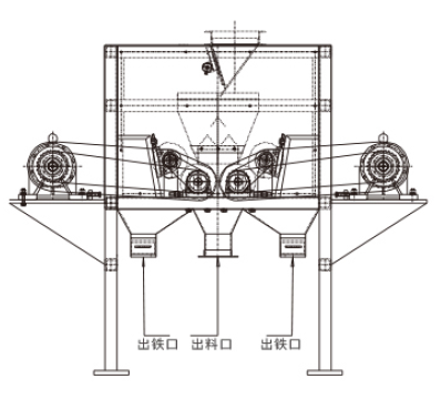 DHD型對輥干式磁選機是我公司經多年市場經驗研發(fā)的一種新型干選設備。其磁系經過特殊設計、屬于永磁局部半閉合磁系結構;磁感應強度大并且可在13000GS~20000GS范圍內進行調節(jié)。將物料均勻的送到磁選區(qū)域后,在設備的磁選區(qū)受到重力和磁場力的作用下,利用物料的磁性差異有不同的運動軌跡實現(xiàn)分離,磁性礦物被吸附在磁輥表面旋轉到達精礦區(qū),毛刷將吸附在磁輥表面上的磁性礦刷脫。該機對粉礦率較少但又均勻的中小顆粒狀礦石分選效果卓越,生產效率高,操作簡單方便。適用于硅粉、石英石、鋯石、長石等細粒級的非磁性礦石去除磁性物提純作業(yè)。