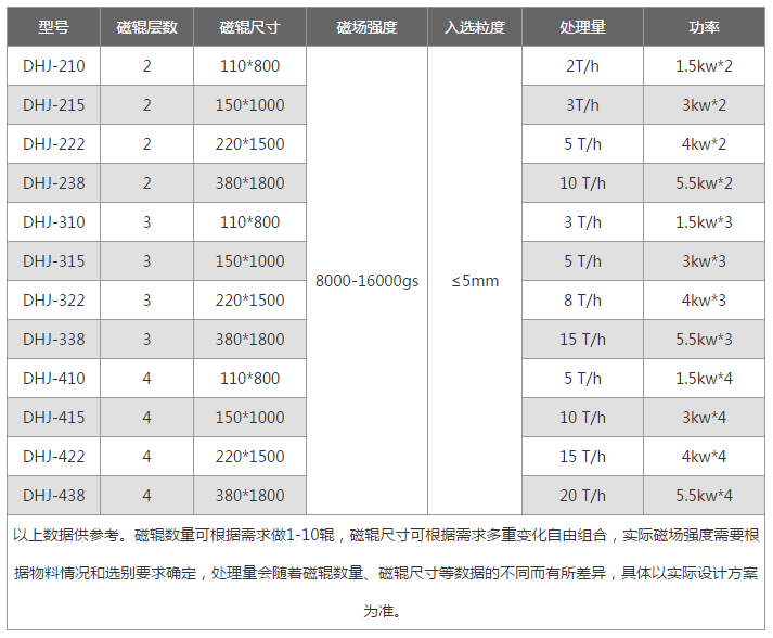 DHJ系列強輥干式磁選機是一種新型干選設(shè)備,可根據(jù)需求生產(chǎn)1-10層結(jié)構(gòu),實現(xiàn)物料的多次分選。該機對粉礦率較少但又均勻的中小顆粒狀礦石分選效果好,生產(chǎn)效率高,操作簡單方便。